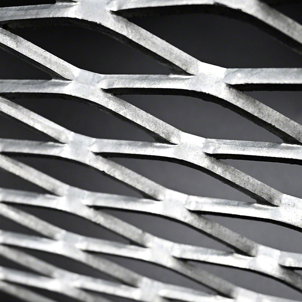 JIS規格グレーチング型(亀甲形の網目)の鉄製エキスパンドメタルに、亜鉛メッキ加工を施した商品です。