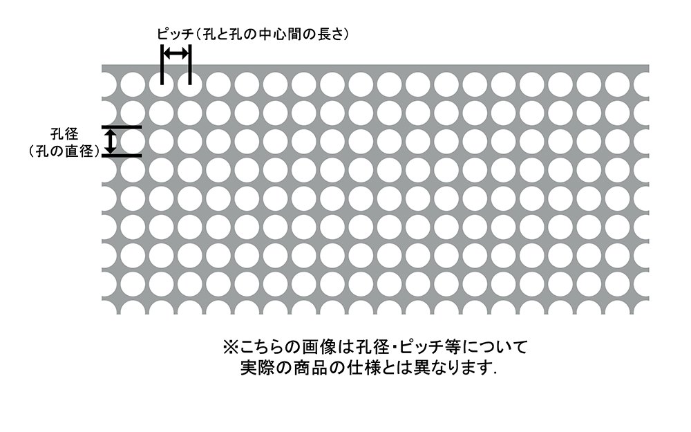 ※ 孔径、ピッチ、板厚、寸法については、特に記載のない限りmm単位での表示としております。