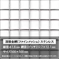 | 商品名 | 溶接金網(ファインメッシュ) ステンレス 線径φ1.6 網目12.7×12.7 200×200 | 溶接金網(ファインメッシュ)サンプル |