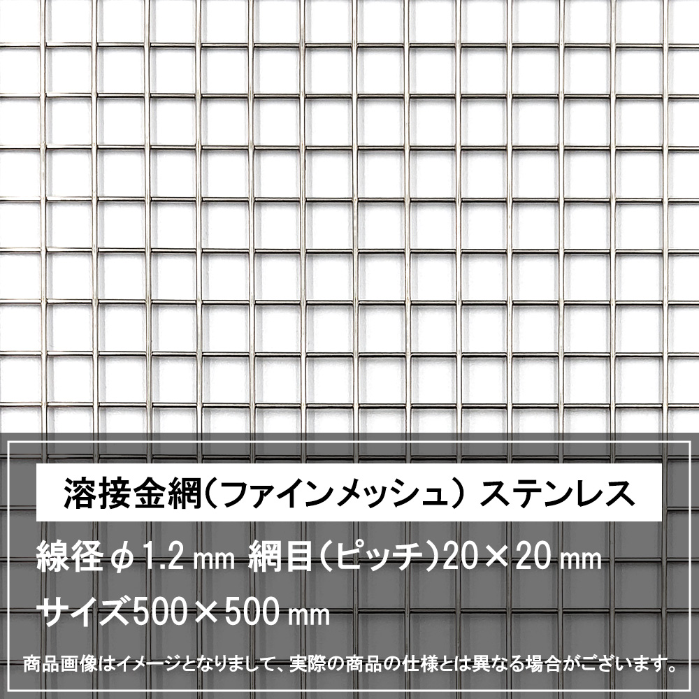 | 商品名 | 溶接金網(ファインメッシュ) ステンレス 線径φ1.2 網目20×20 500×500 |