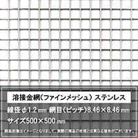 | 商品名 | 溶接金網(ファインメッシュ) ステンレス 線径φ1.2 網目8.46×8.46 1000×1000 |