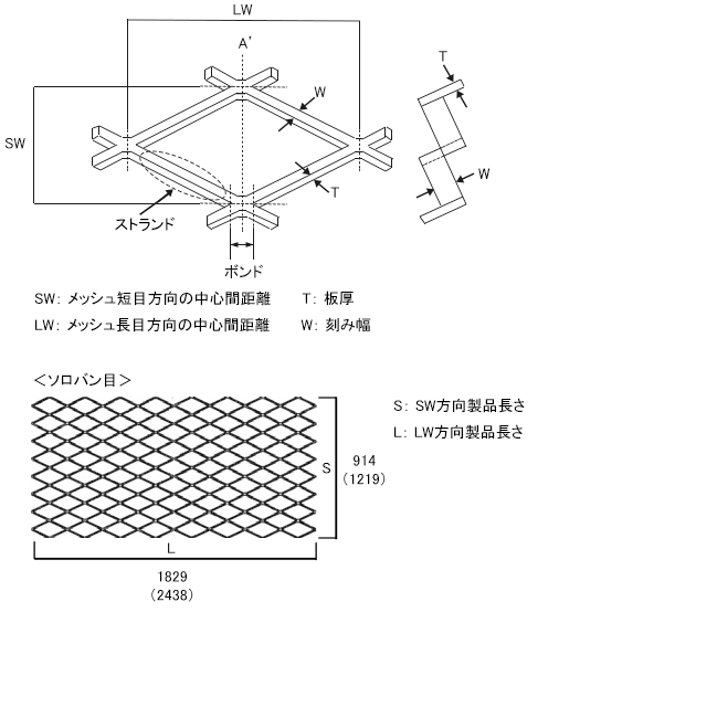 エキスパンドメタル各部の名称については画像で確認をお願いいたします。