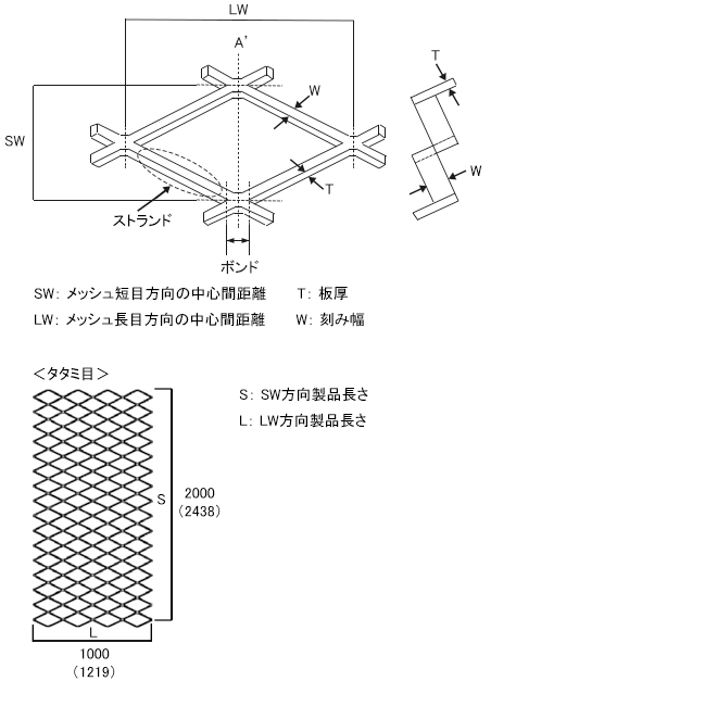 その他エキスパンドメタル各部の名称各部の名称については画像で確認をお願いいたします。