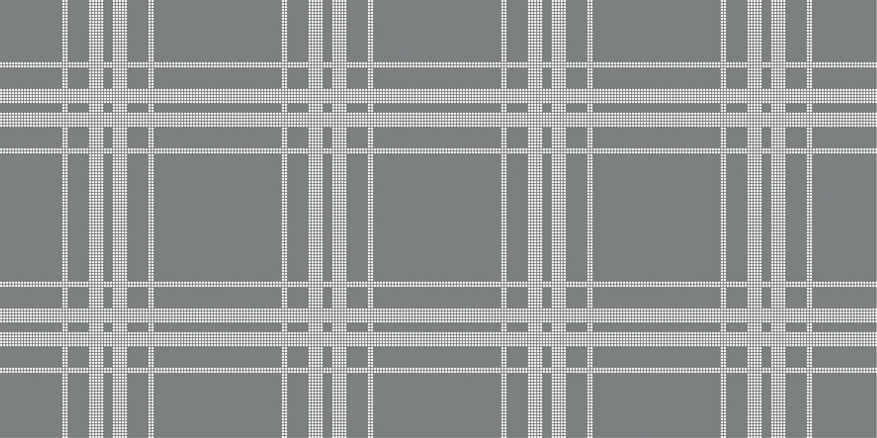 こちらの商品は、φ10 mmの孔径による孔あけで、タータンチェック柄を表現したパンチングメタルです。