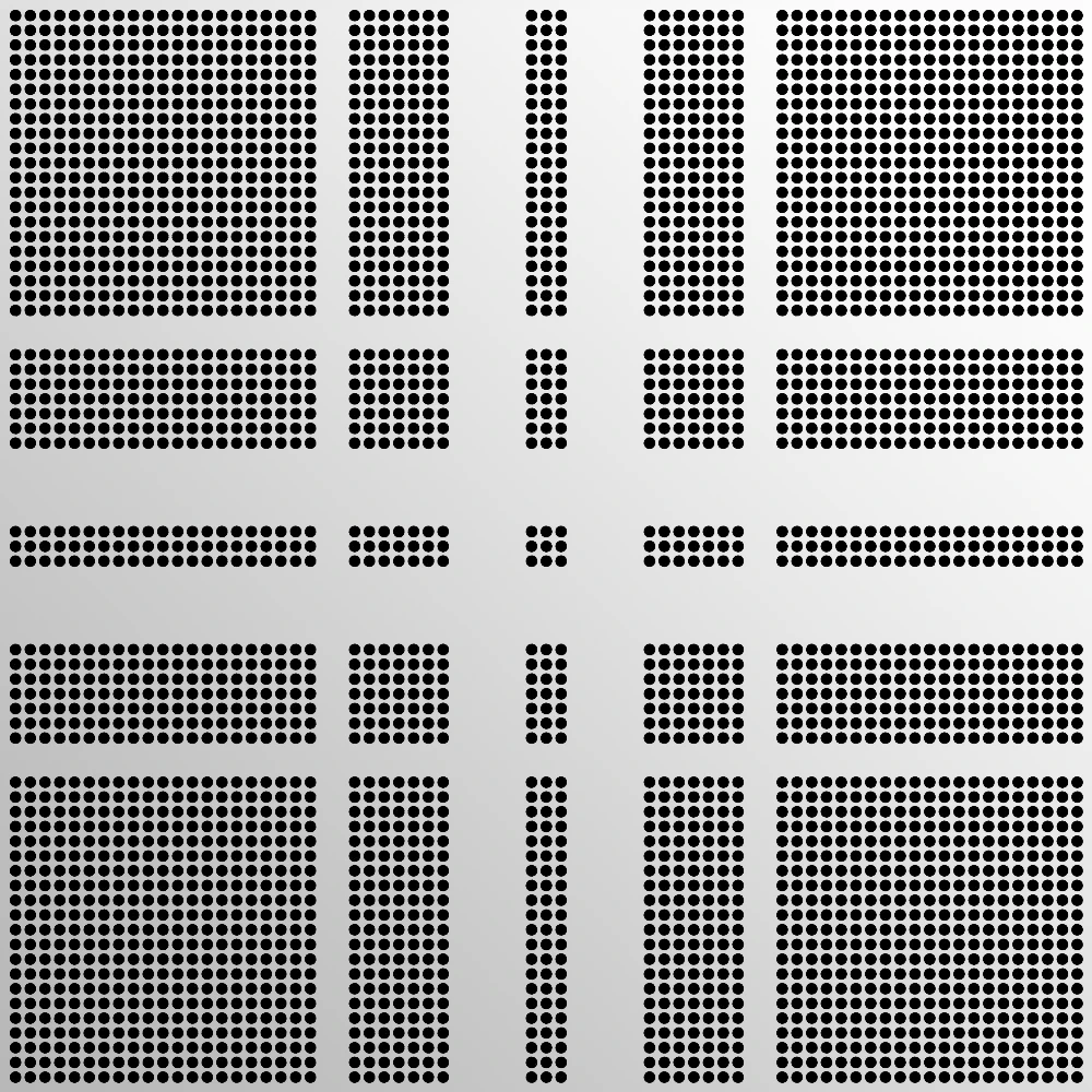 グラデーションのパンチングメタル 【単一の孔径】(Free Art Perforation®) アルミ(A1100) t1.0 1000×1000