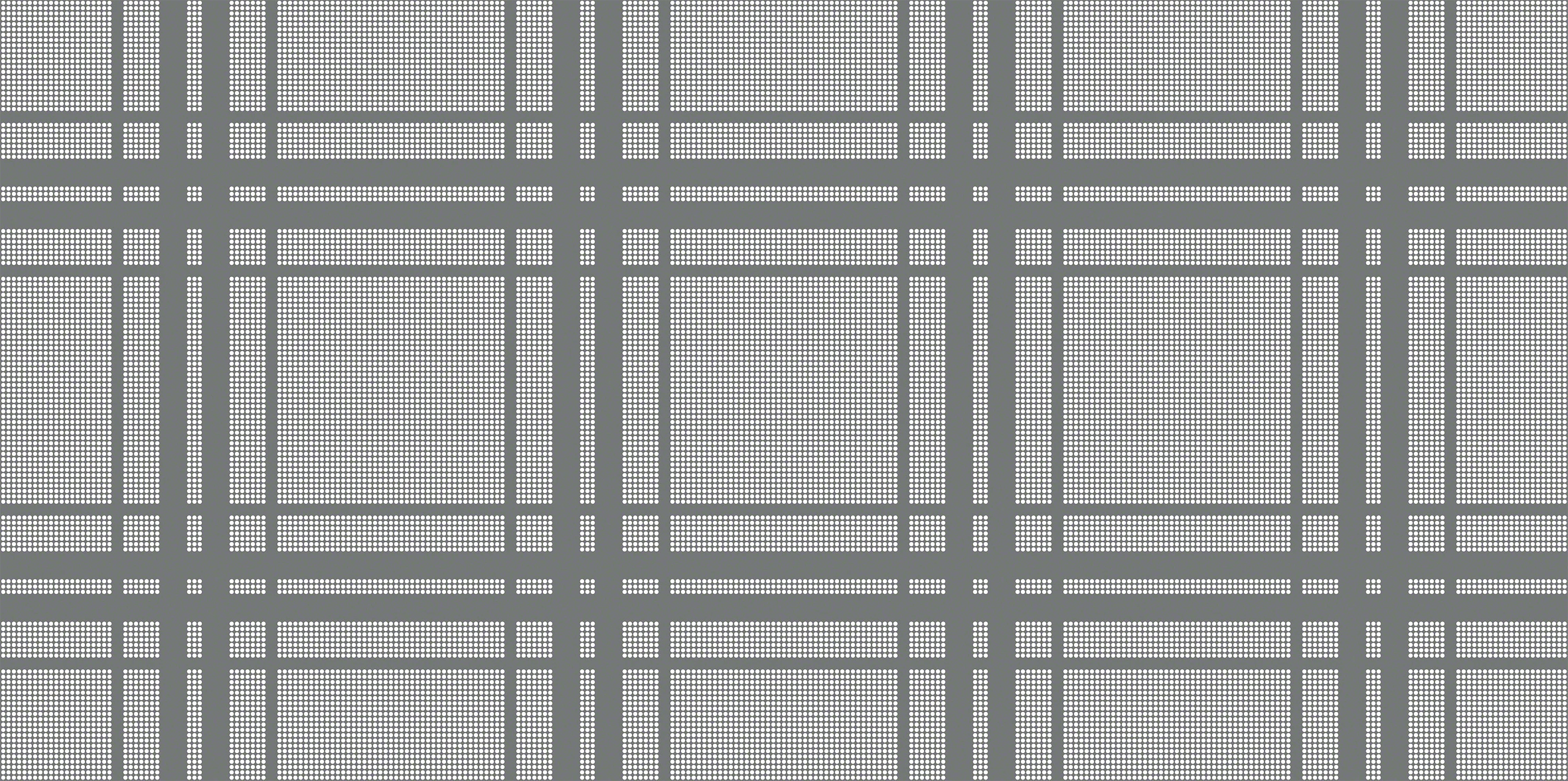 こちらの商品は、φ10 mmの孔径によるフリー・アート・パーフォレーション®の孔あけで、タータンチェック柄を表現したパンチングメタルです。